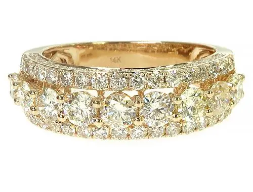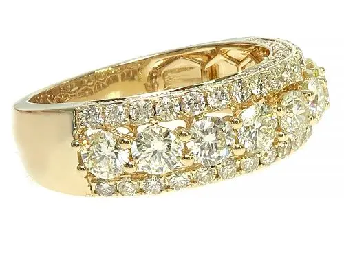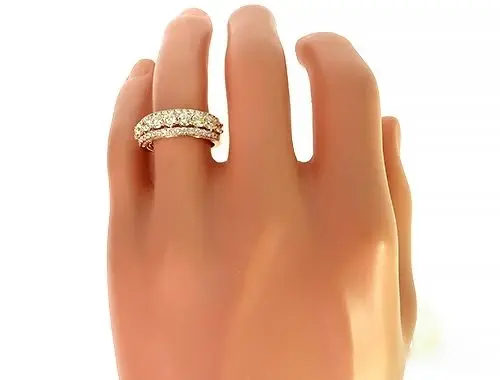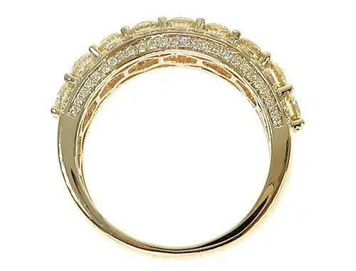 A 14K gold Row diamond ring with an impressive three rows of natural round diamonds totally 2.83 carats, boasting a stunning G-H color and sparkling with unmatched brilliance. With a round cut that ma…